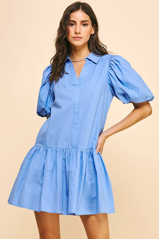 Baby Blue Collared Dress with Bubble Sleeve