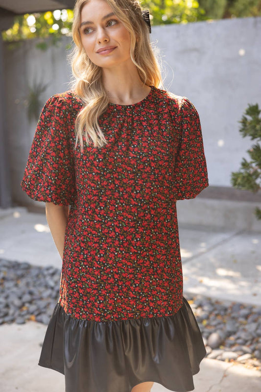 Floral Contrast Short Sleeve Mini Dress