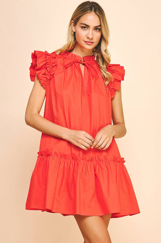 Sold outRuffle Dress in Tomato