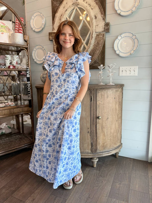 Blue Flower Maxi Dress