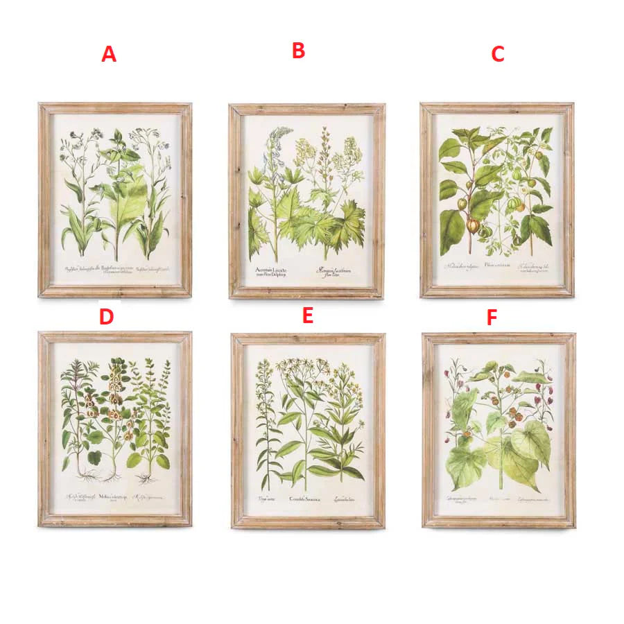 Assorted Botanical Prints in Natural Wood Frames, 6 Styles