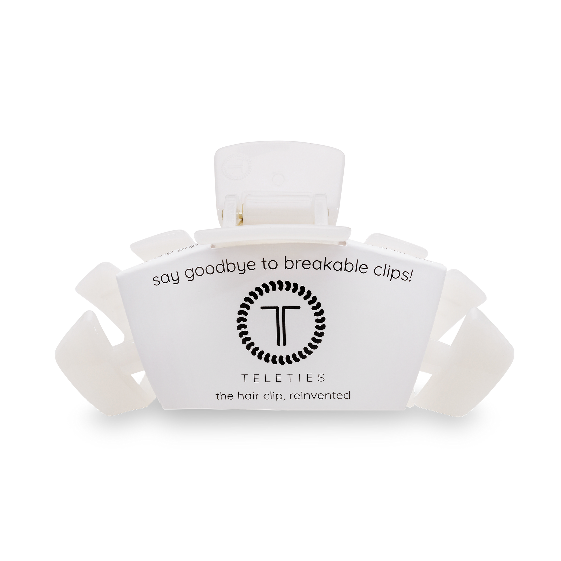 Say goodbye to breakable clips! We have perfected the hair tie and now have re-invented the clip. Each clip has bendable teeth that take back to shape, they work on all hair types and have a strong hold. Hold your hair and enhance your style with the new TELETIES Clip! Large clips are great for thick hair.