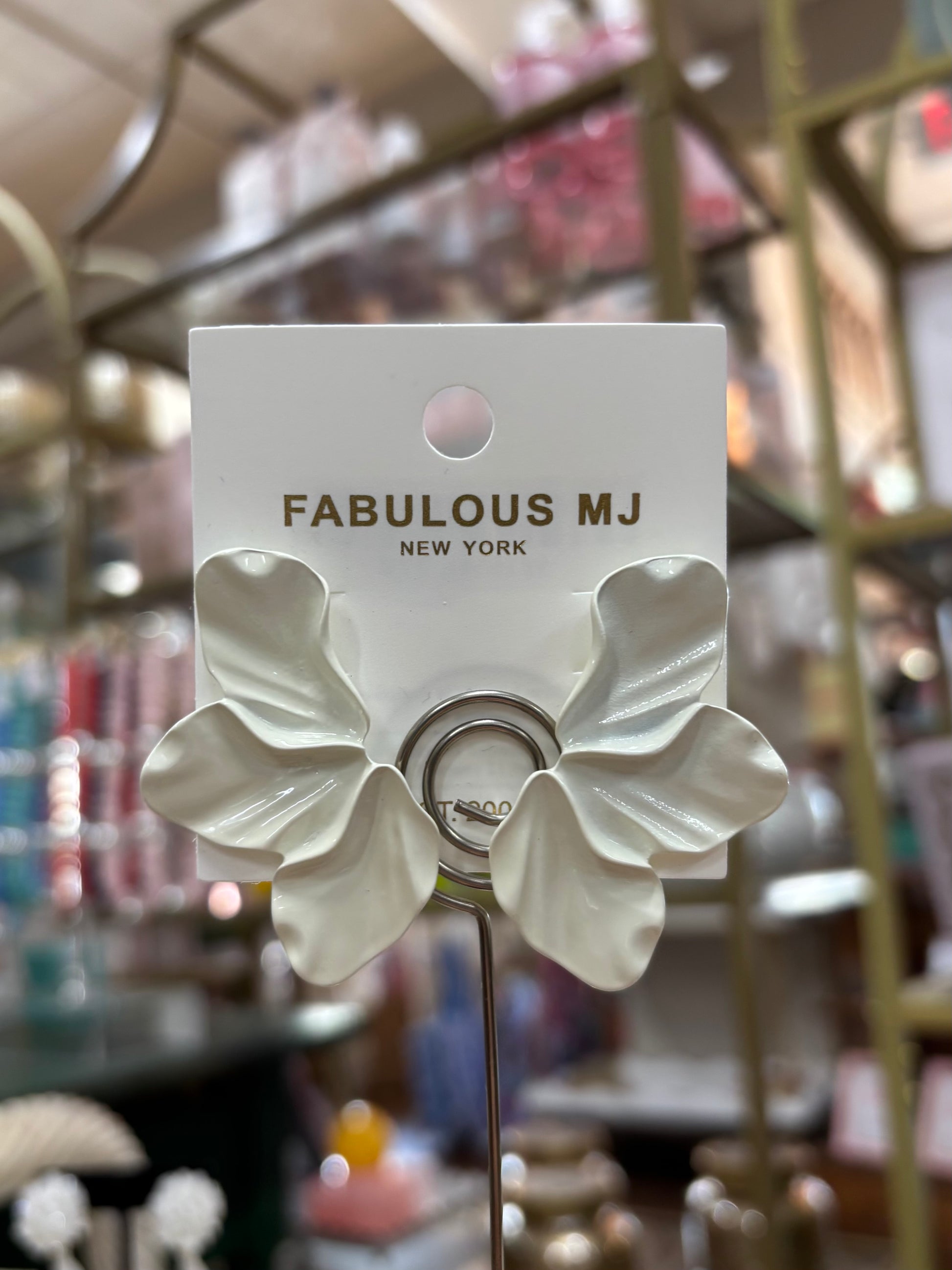 These Fabulous MJ White Petal Earrings are the perfect accessory for any occasion. With its elegant and unique design, these earrings will add a touch of sophistication to any outfit. Featuring high-quality materials and expert craftsmanship, these earrings are sure to be a staple in your jewelry collection. Elevate your style with Fabulous MJ White Petal Earrings.