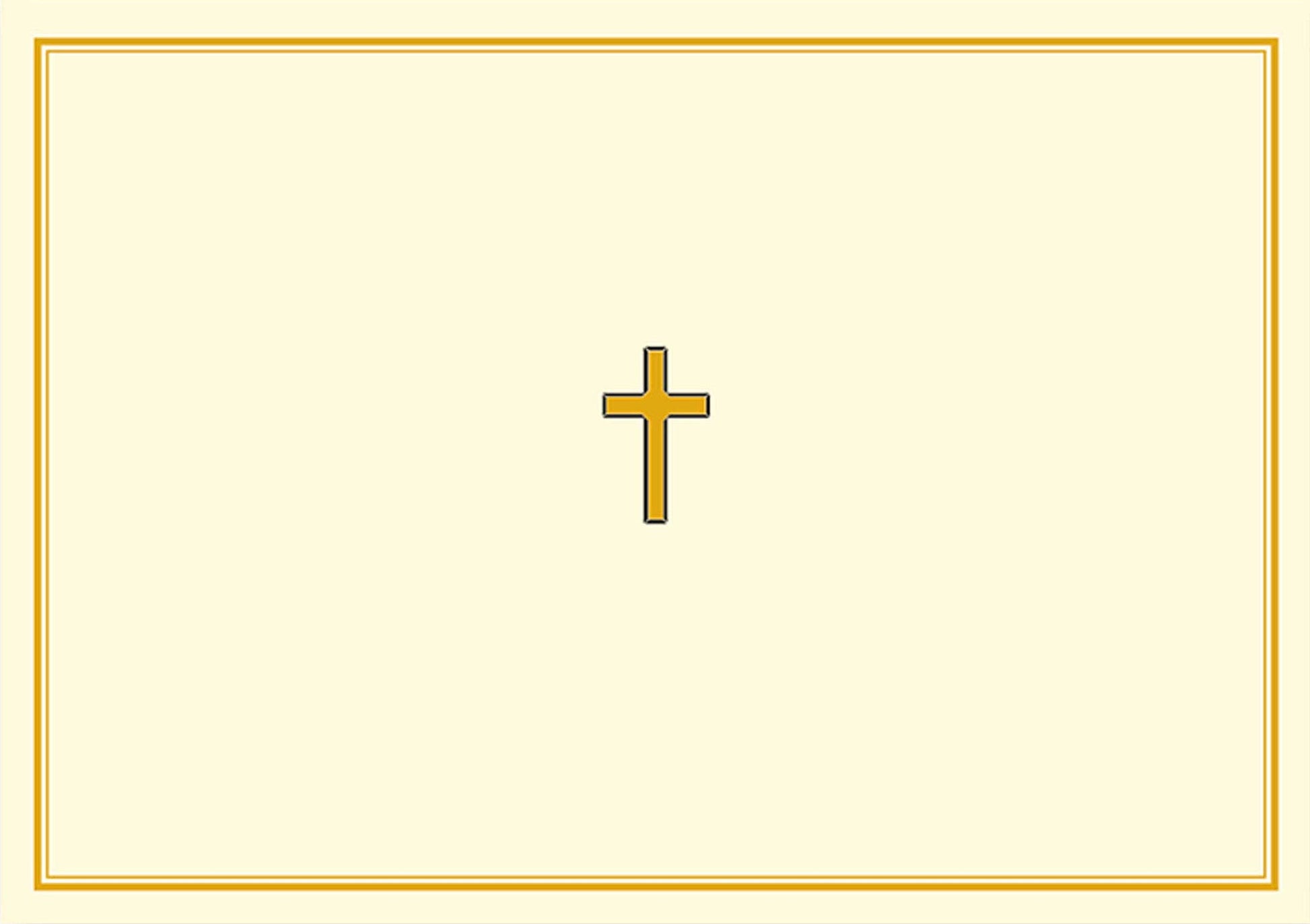 Let these classic note cards complement your personal correspondence. Premium boxed stationery set comes with 14 note cards and 15 envelopes. Note card interiors are blank for your personal messages. Smooth-finish uncoated card stock takes pen beautifully. Card exteriors feature a crisp linen-like finish. Timeless design features a simple cross on an ivory background, framed in gold. Card is embossed and embellished with gold foiling. Matching stationery envelopes complete the set. Cards are suitable for a variety of occasions. Note card set is suitable for gift-giving. Cards measure 5'' wide x 3-1/2'' high. Cards come in a matching board box with a clear acetate lid.