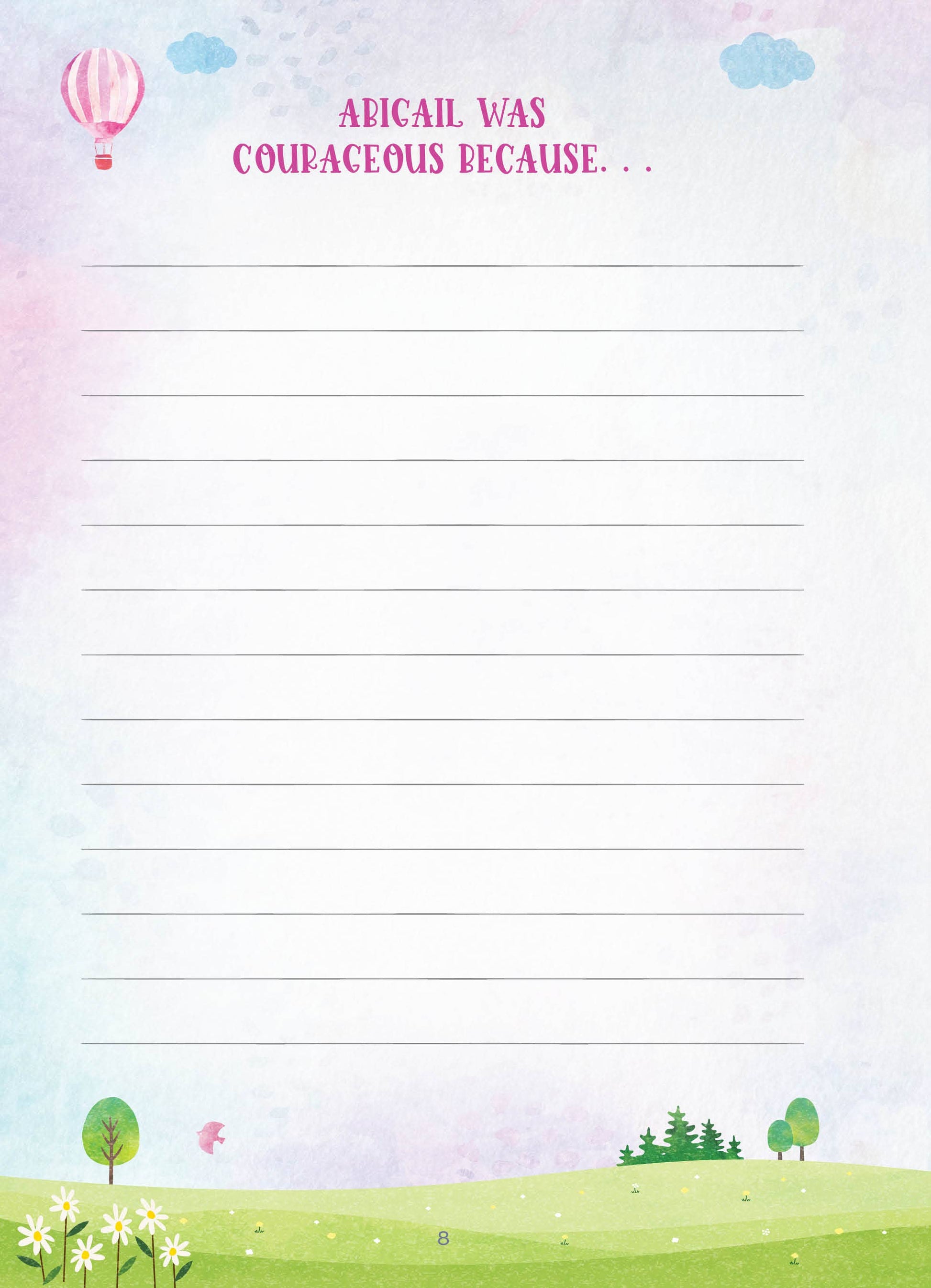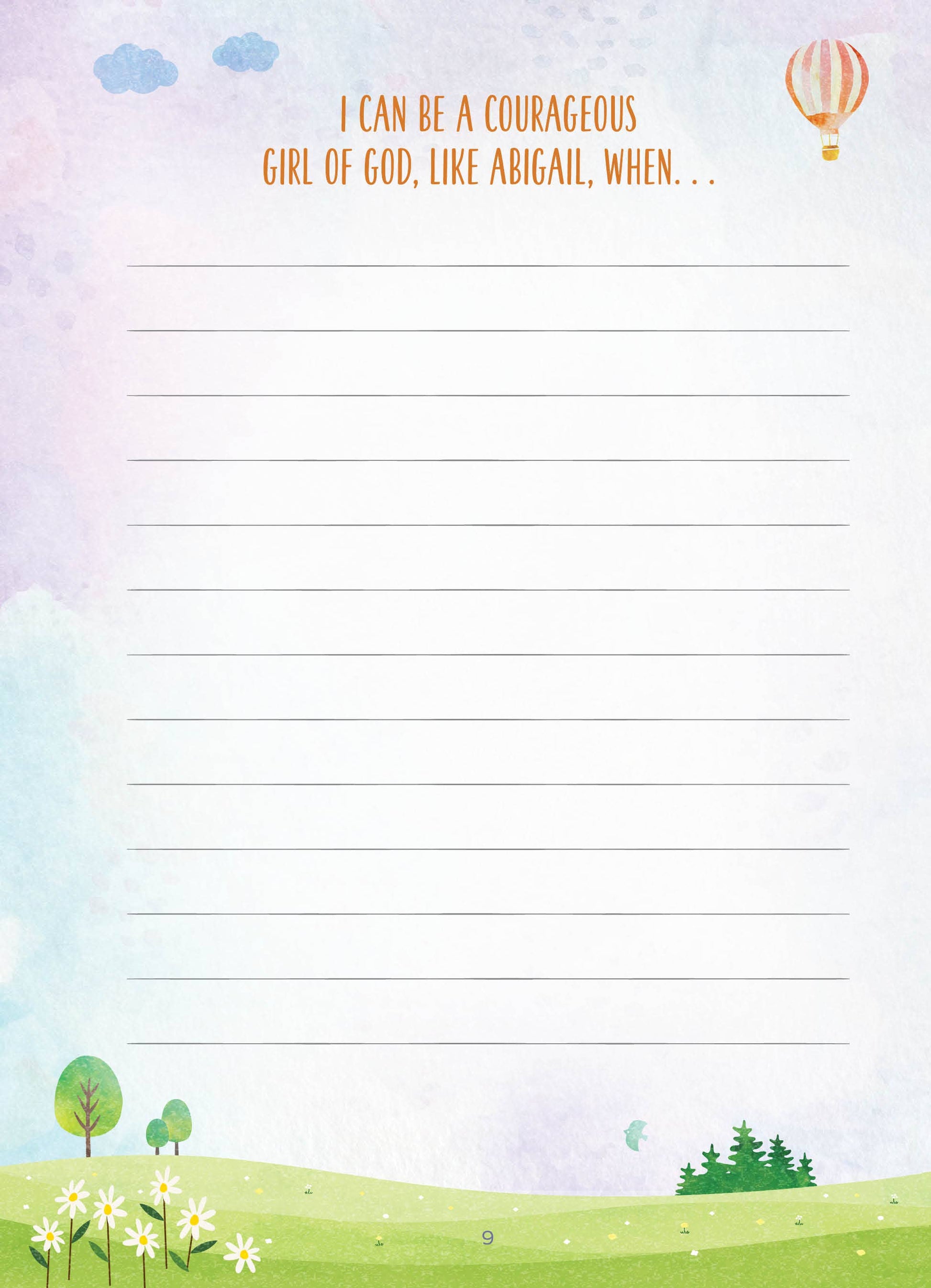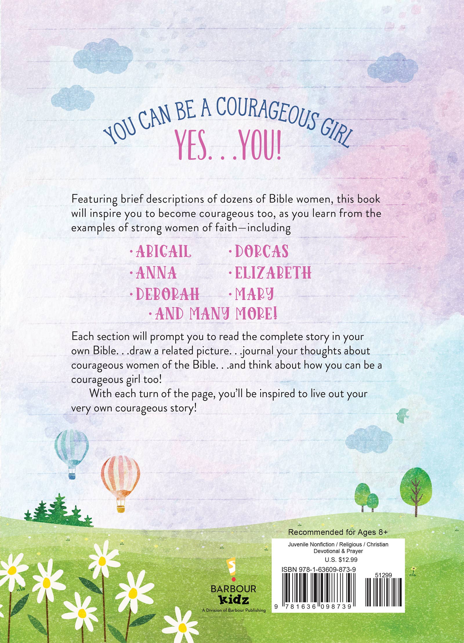 Featuring brief descriptions of dozens of Bible women, your girls, ages 8 and up, will be inspired to become courageous, too, as they learn from the examples of strong women of faith--including Abigail, Anna, Deborah, Dorcas, Elizabeth, Mary, and dozens more! Each section prompts girls to read the complete story in their own Bible, draw a related picture, journal their thoughts about courageous women of the Bible, and think about how they, too, can be a courageous girl! This delightful journal makes a great standalone or companion to 100 Extraordinary Stories for Courageous Girls and The Bible for Courageous Girls.