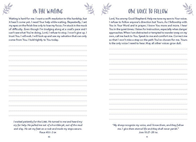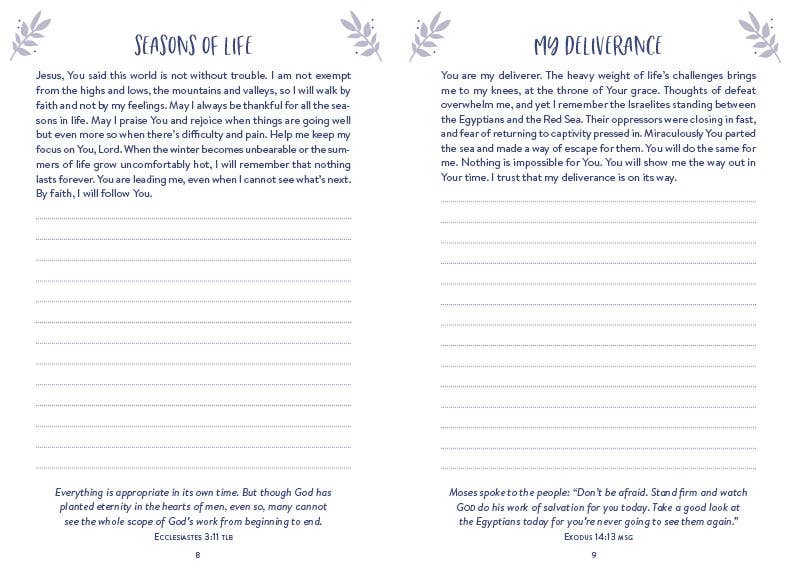 Each prayer is perfectly paired with a relevant scripture selection and ample journaling spaceāa fabulous way for you to begin or end your day in quiet fellowship with the heavenly Father.