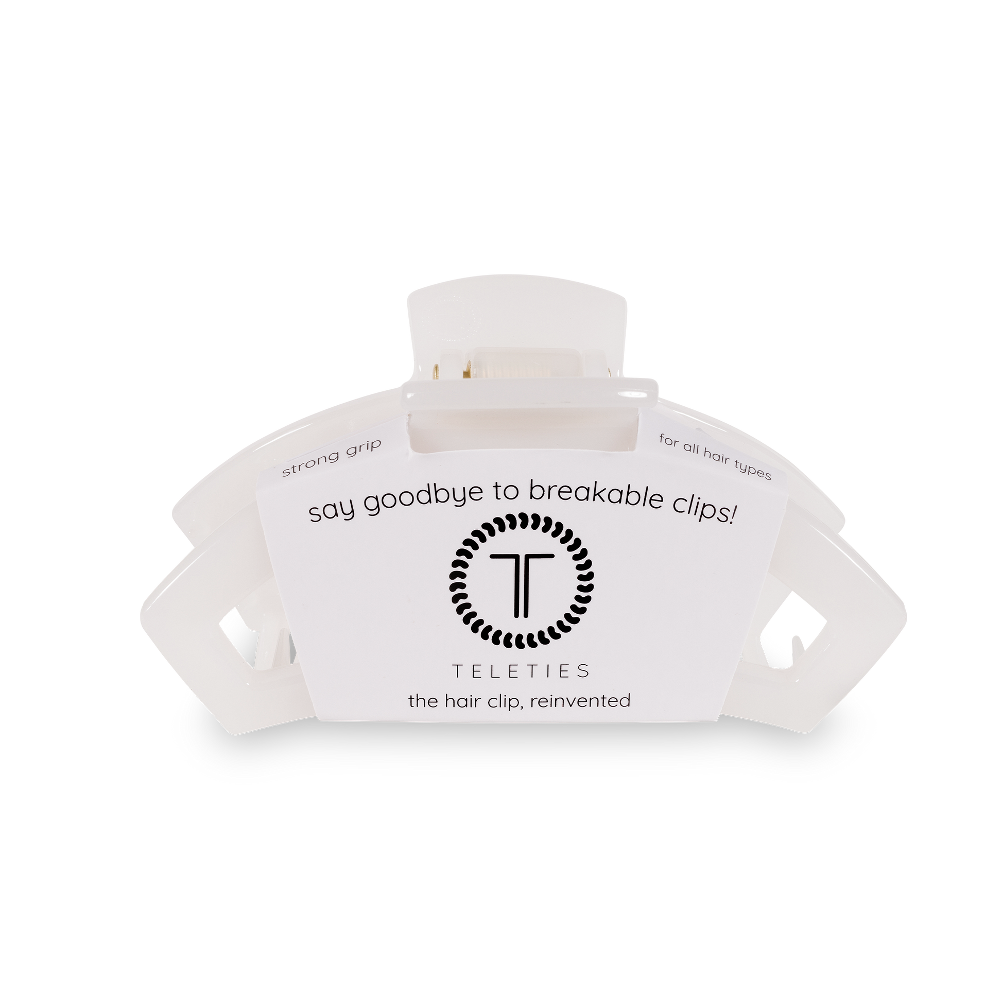 Say goodbye to breakable clips! We have perfected the hair tie and now have re-invented the hair clip. Each clip has bendable teeth that take back to shape, they work on all hair types and have a strong hold. Hold your hair and enhance your style with the new TELETIES Clip!