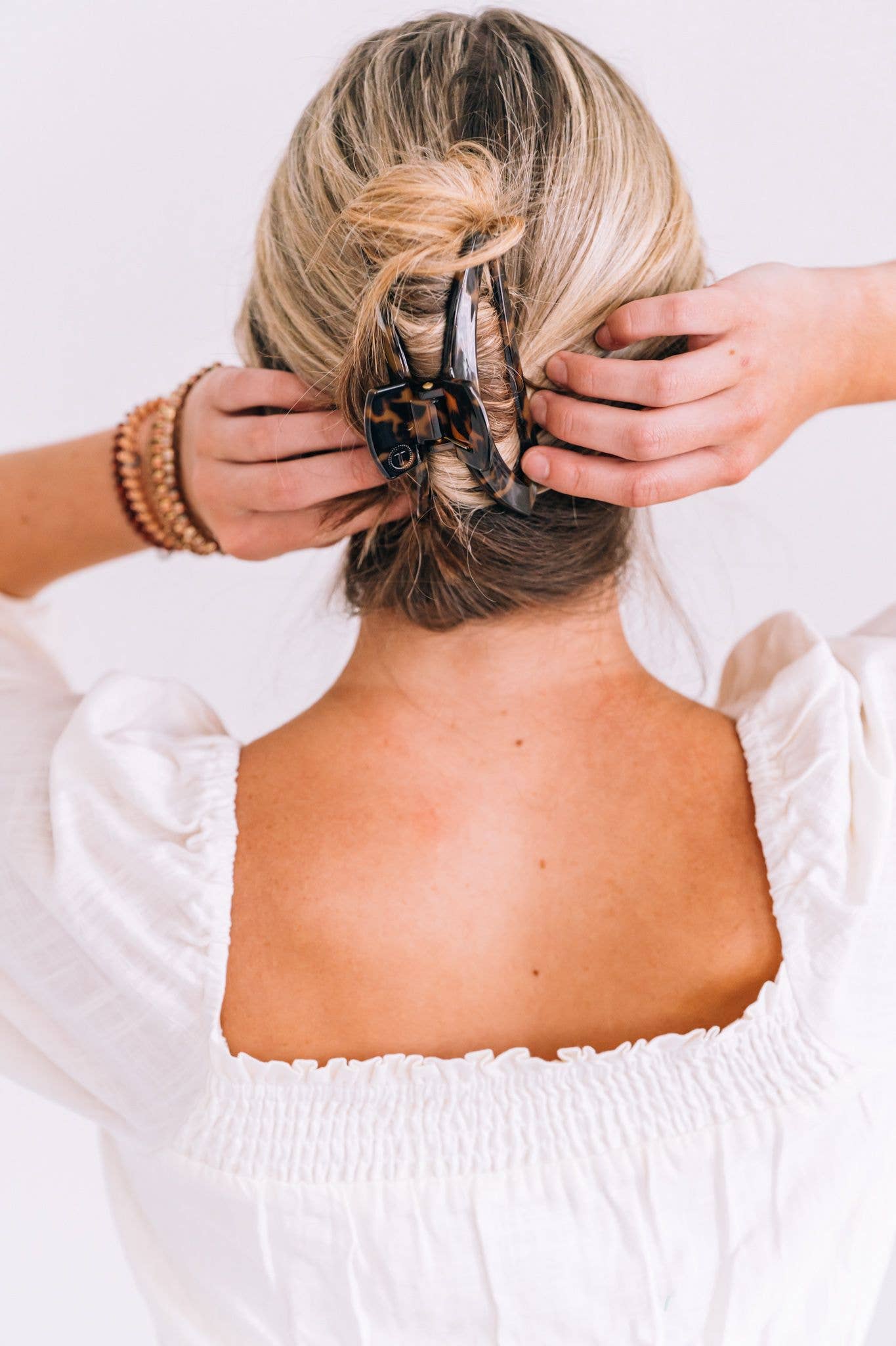Say goodbye to breakable hair clips! We have perfected the hair tie and now have re-invented the clip. Meet the Open Tortoise Large Claw Hair Clip in Brown, crafted to elevate any hairstyle with the ideal blend of style and function.