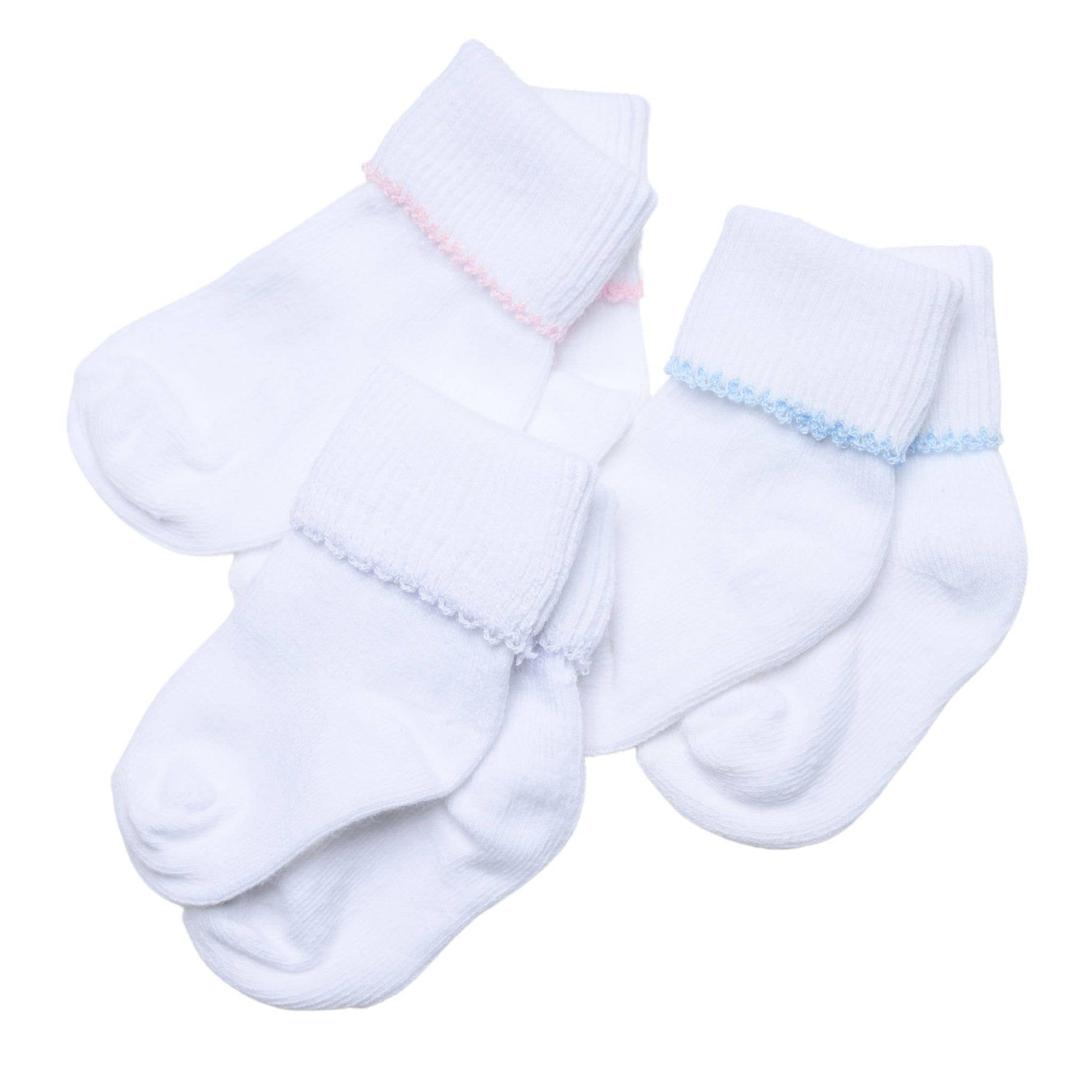 Ensure the baby's toes are both comfortable and coordinated with our Magnolia Baby Essential Socks. These classic white socks feature a light blue picot trim, adding timeless elegance to any outfit.