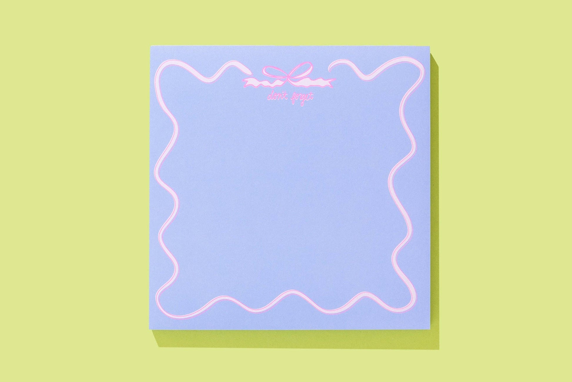 This blue and pink notepad includes the phrase "don't forget" on top of every sheet. Pair it with a pen or pen set and make it a gift set! Our notepads are perfect for desk accessories, stationery, gift bundles and more! Perfect for spring events like Easter, Mother's Day or Graduation.