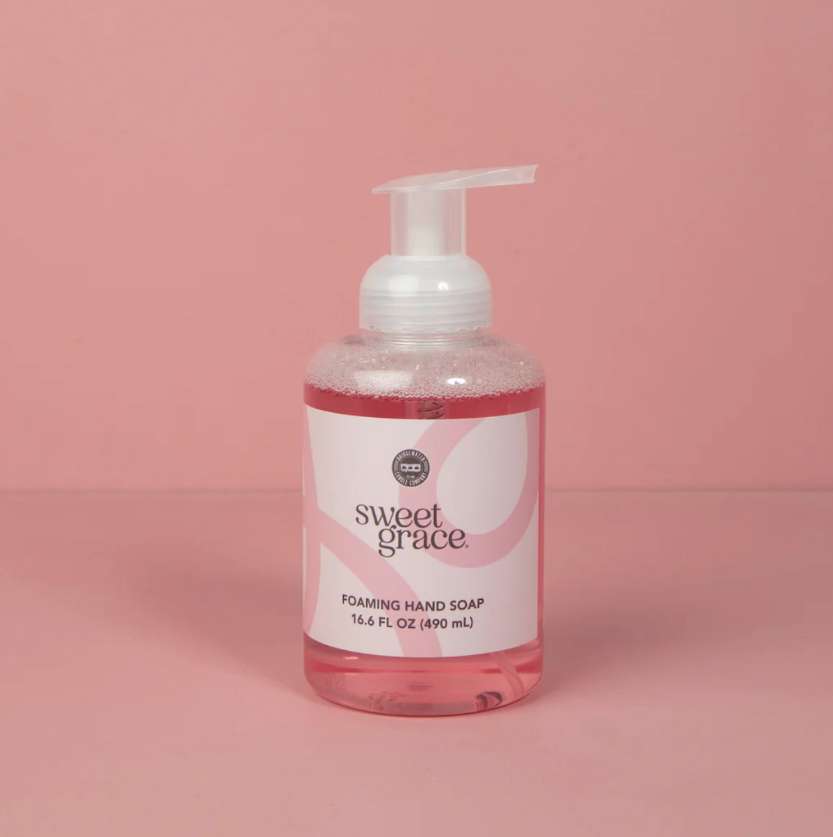 Indulge in Sweet Grace Foaming Hand Soap! Infused with moisturizing aloe, it cleanses and pampers your skin, leaving hands soft and refreshed with every wash.