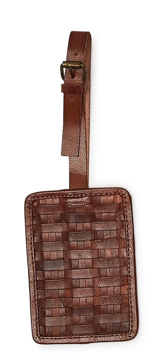Chestnut Woven Leather Luggage Tag Assorted 2 Patterns (minor imperfections and variations are natural characteristic of material and hand-crafted origin) - Leather/Metal/Paper